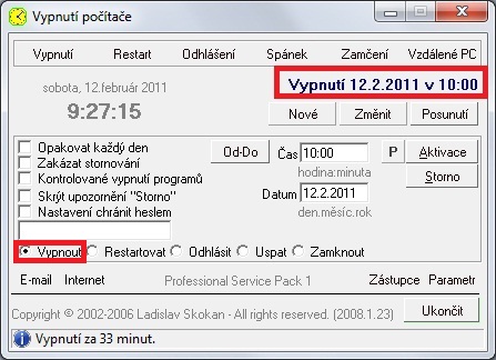 Spustíme na ploche ikonku Vypnutí pc. Klikneme Nové a vyberieme z ponuky vypnout, reštartovať atď.